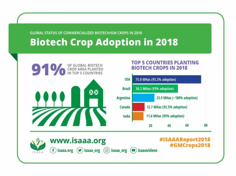 Since 1996, the International Service for the Acquisition of Agri-biotech Applications (ISAAA) has been publishing an annual brief of that year’s international developments in biotechnology. As part of our celebrations of Global Biotech Week, we thought it would be a great opportunity to share just a few of the wonderful snippets from the 2018 ISAAA Briefing.
